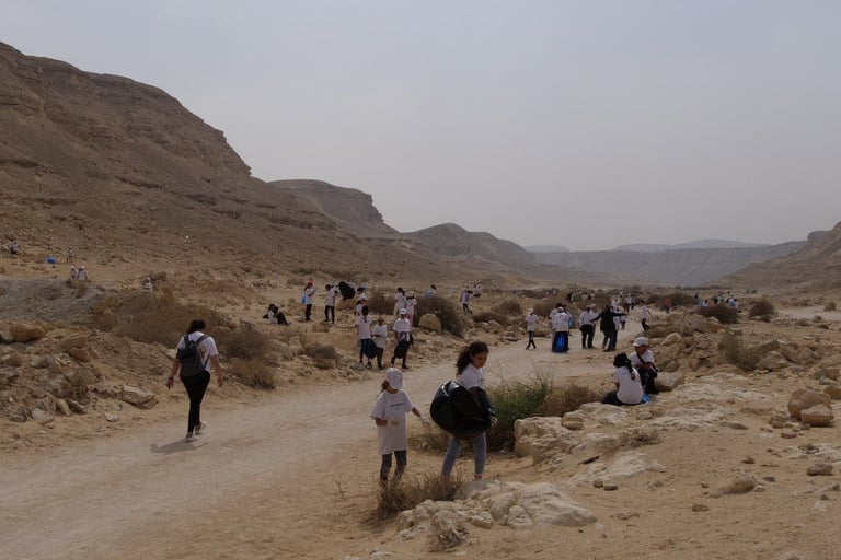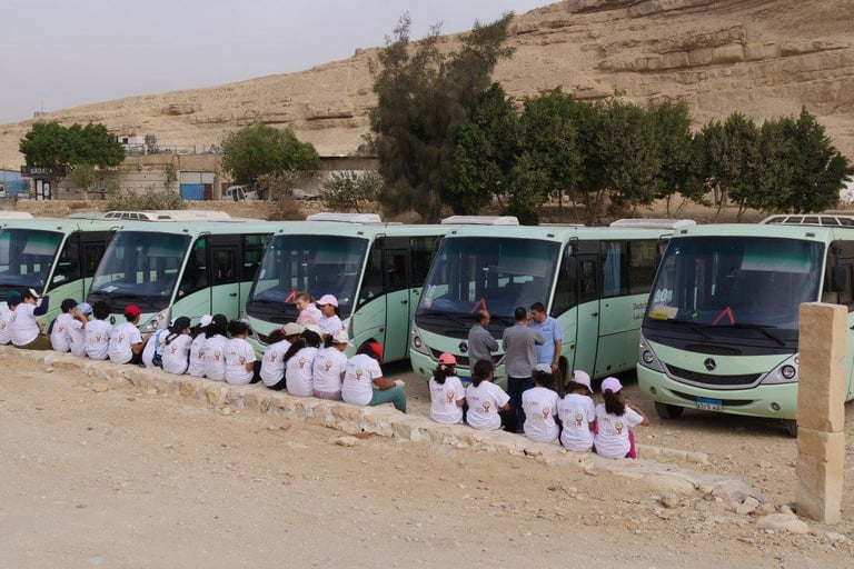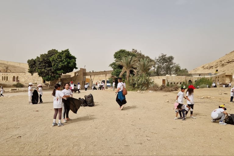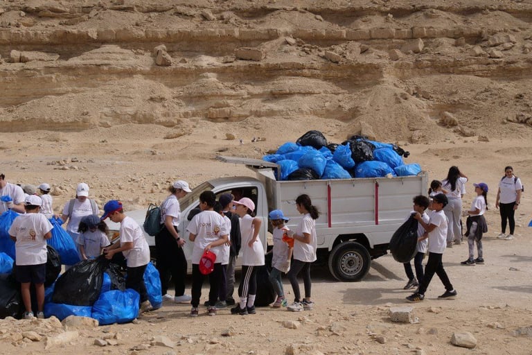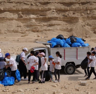 On April 8 and 9, 2025, the Stiftung Bewusst-Sein carried out an environmental project in the Wadi Degla Nature Reserve near Cairo (Egypt). More than 400 people – primarily students of the German Evangelical Secondary School (DEO) – took part in a large-scale clean-up campaign, initiated, organized, and fully funded by our foundation.